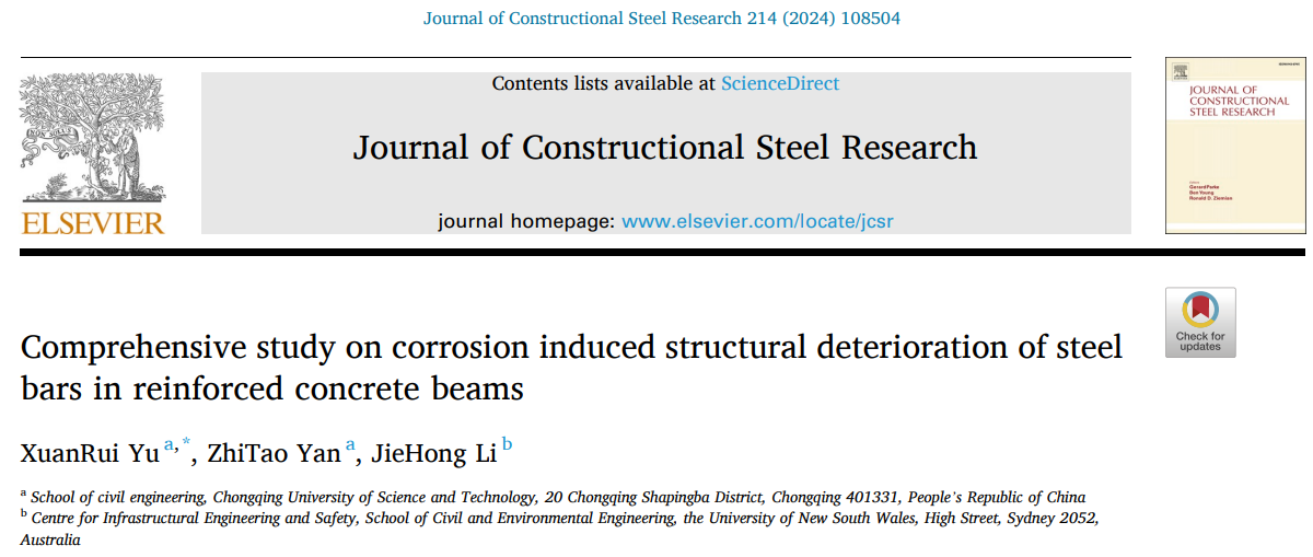 喻宣瑞博士在钢筋混凝土耐久性领域权威期刊《Journal of Constructional Steel Research》发表成果